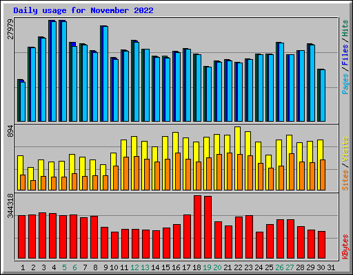 | Day | Hits | Files | Pages | Visits | Sites | KBytes | ||||||